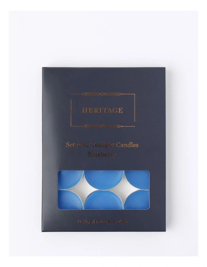 Heritage Blueberry Scented Tealight Candles Set of 12 Blue