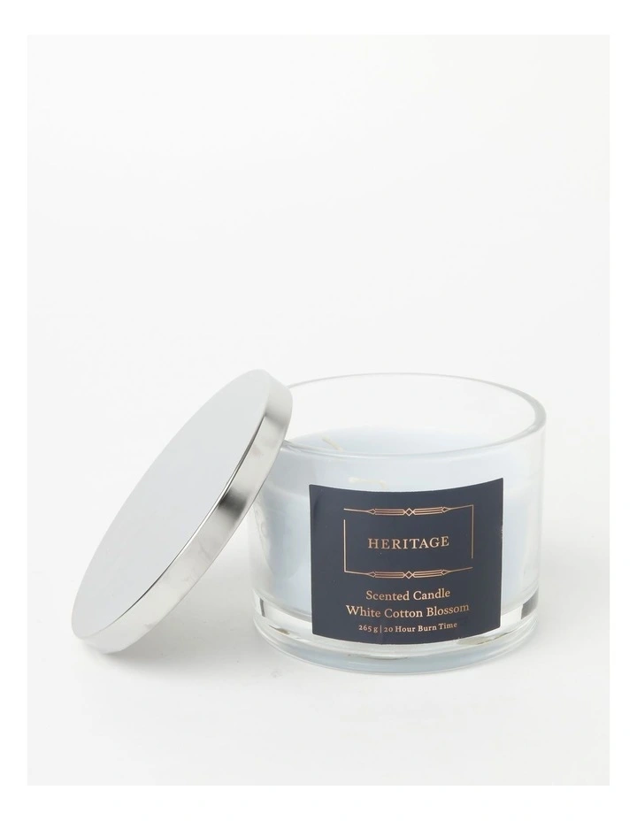 Heritage Candle in Glass Jar White Cotton & Blossom 8cm in Grey