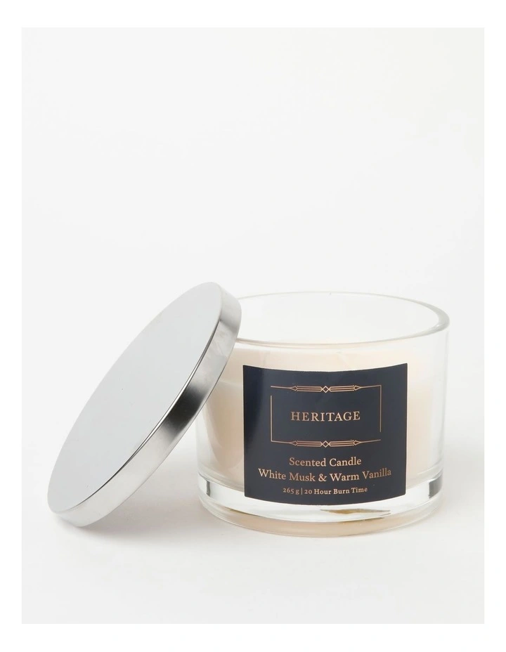 Heritage Candle in Glass Jar White Musk & Warm Vanilla 8cm in Ivory