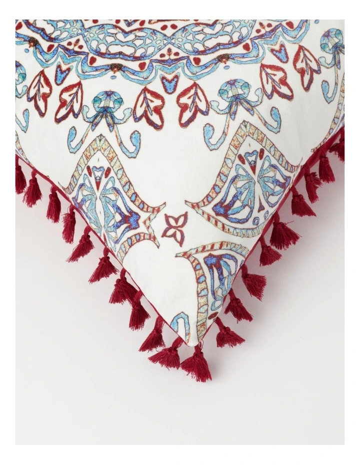 Heritage Coberta Medallion Velvet Tassled Cushion in Red: 50cm x 50cm
