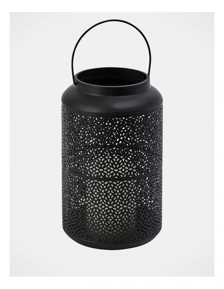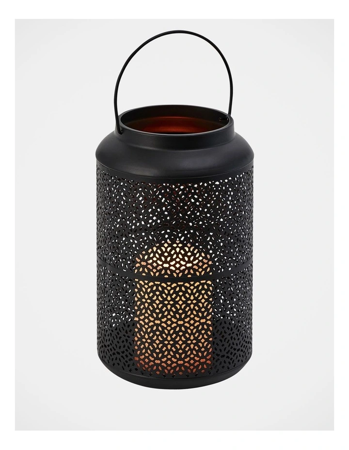 Heritage Hanging Metal Lantern with LED Candle Large 15x15x26cm in Black