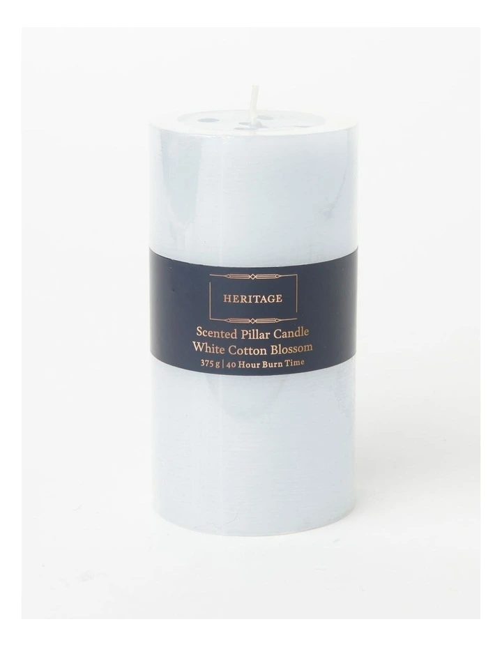 Heritage Rustic Scented Pillar Candle White Cotton Blossom 13cm in Grey