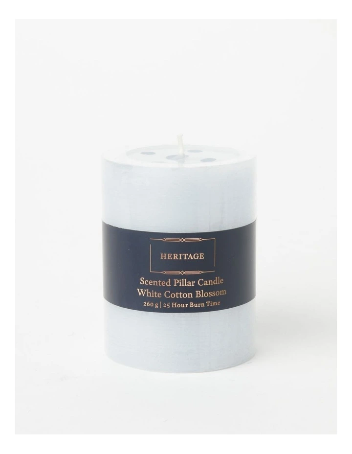 Heritage Rustic Scented Pillar Candle White Cotton & Blossom 9cm in Grey