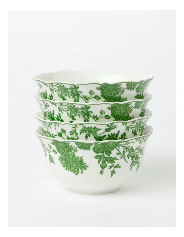 Heritage Green Toile Floral Deep Bowl Set of 4 in Green