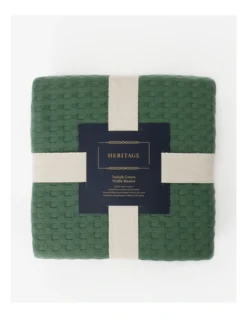 Heritage Turkish Cotton Waffle Blanket in Green