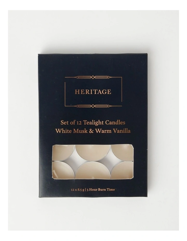 Heritage Set of 12 White Musk & Warm Vanilla Scented Tealight Candle in Ivory