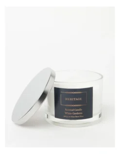 Heritage Candle In Glass Jar White Cotton & Blossom 8cm In Grey