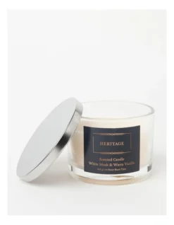 Heritage Candle In Glass Jar White Musk & Warm Vanilla 8cm In Ivory