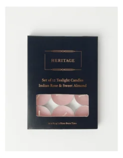 Heritage Indian Rose & Sweet Almond Scented Tealight Candles Set Of 12 In Pink